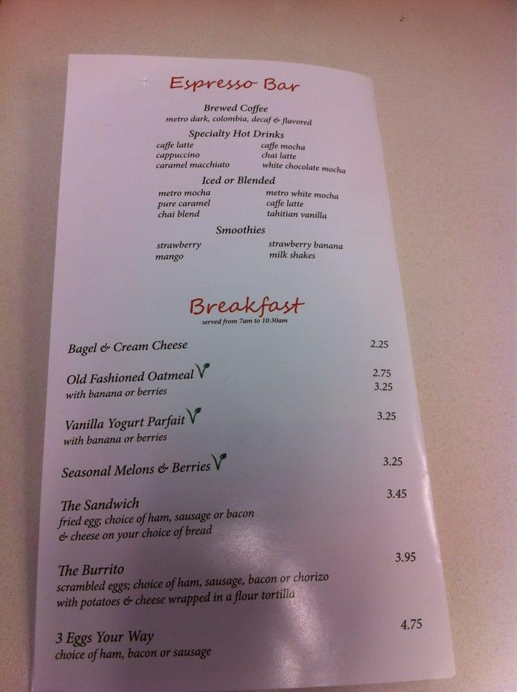 So you found yourself at the Xerox Center, and don't have time to drive somewhere for lunch? Then Metro Bean Cafe is for you. Friendly staff and customer service. Food is better than what you normally get at these kinds of places, and they have good variety. Do I want to eat there every day? No. But if I'm stuck at the office, I definitely don't mind the Bean being my option.